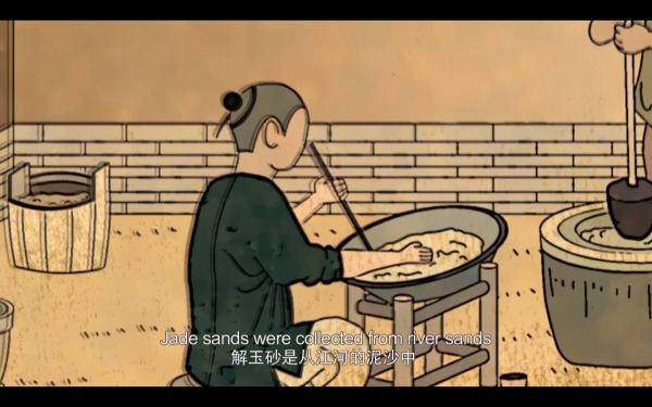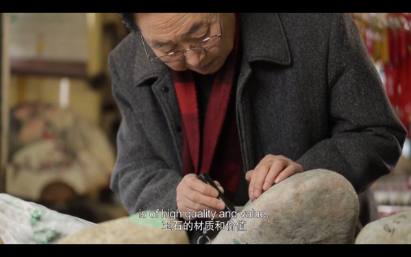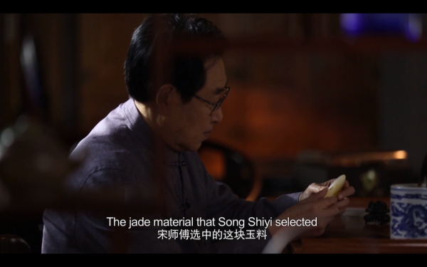 宋世义是一位有着50 多年制玉经验的老师傅,他出生在一个中医世家,在这个具有浓厚中国传统文化的家庭氛围中,宋世义的兴趣爱好非常广泛,他的家人让他好好读书,将来成为中医大夫,继承祖业。但宋世义却不喜欢去辨认各种草药,去背诵枯燥的药方。少年时代的宋世义是一个地道的文艺青年,兴趣和爱好的驱动让他愈发地迷恋戏曲和绘画。 宋世义常说支撑他生活的有两条腿,一个是玉雕,而另一个就是京剧。京剧大师梅兰芳先生是他一生最敬仰最崇拜的人物,今年恰逢梅兰芳诞辰一百二十周年,宋世义想做一件作品,纪念自己的偶像。 洁白的美玉上,贵妇醉酒的神情如生,折扇珠翠云纹构成了传统中国文化的审美。玉之美,戏之韵相映成趣,京剧是国之粹,玉雕是石之粹,玉雕这门古老的东方艺术,是中华文明深厚的基石,从精美的玉器中可以体会创作者的智慧。在中国传统的文化中玉象征着美好的意愿和高贵的品质,而这个理念还将会影响着未来的中国人。