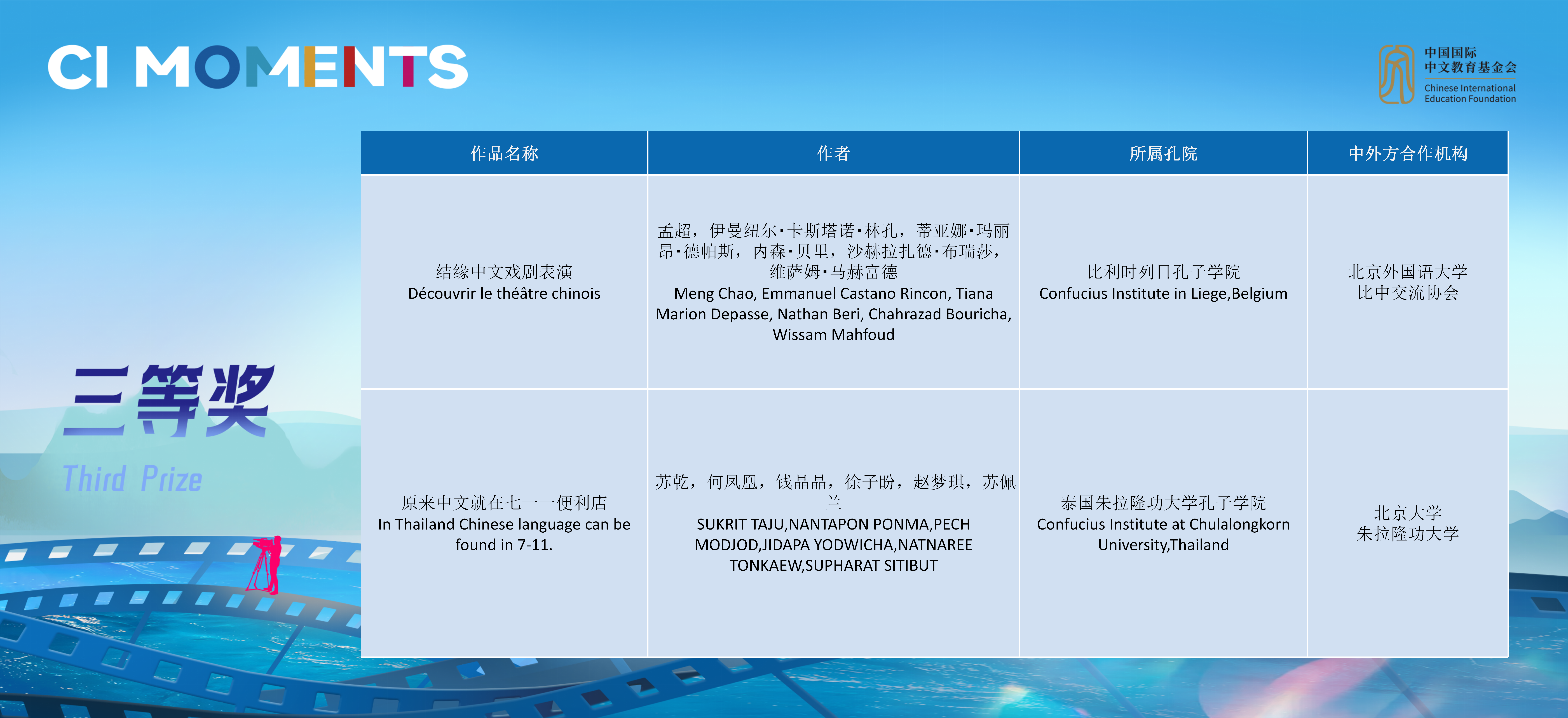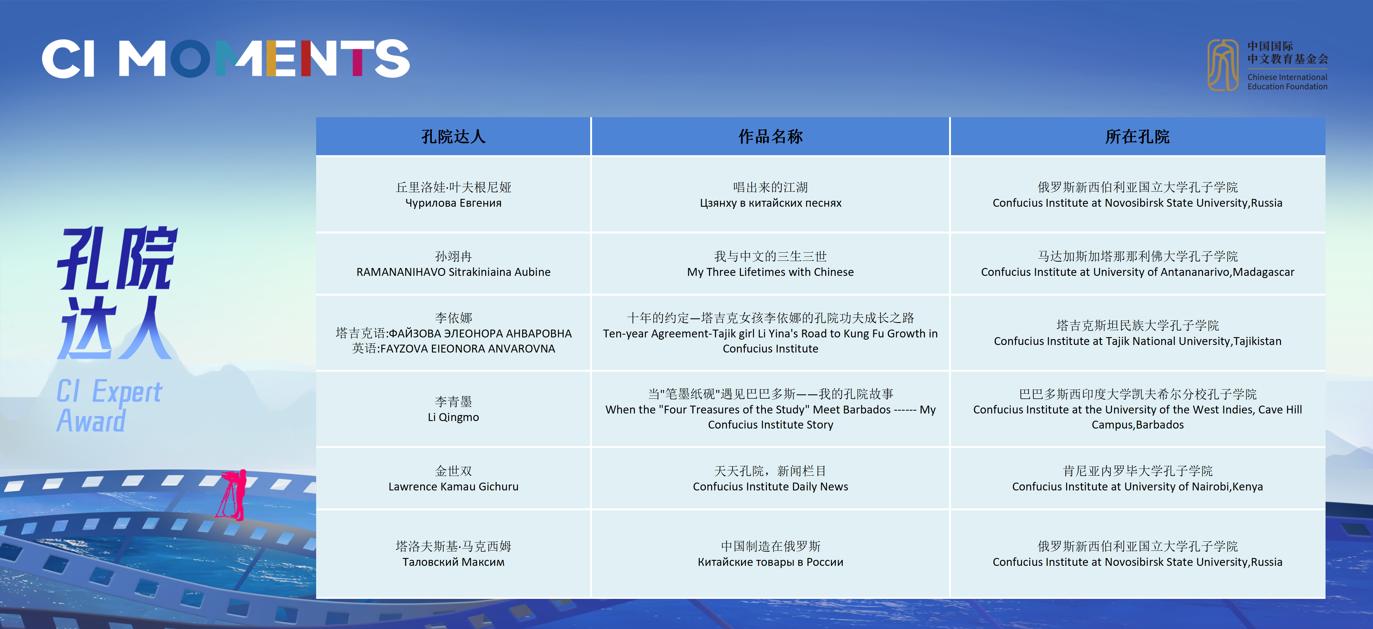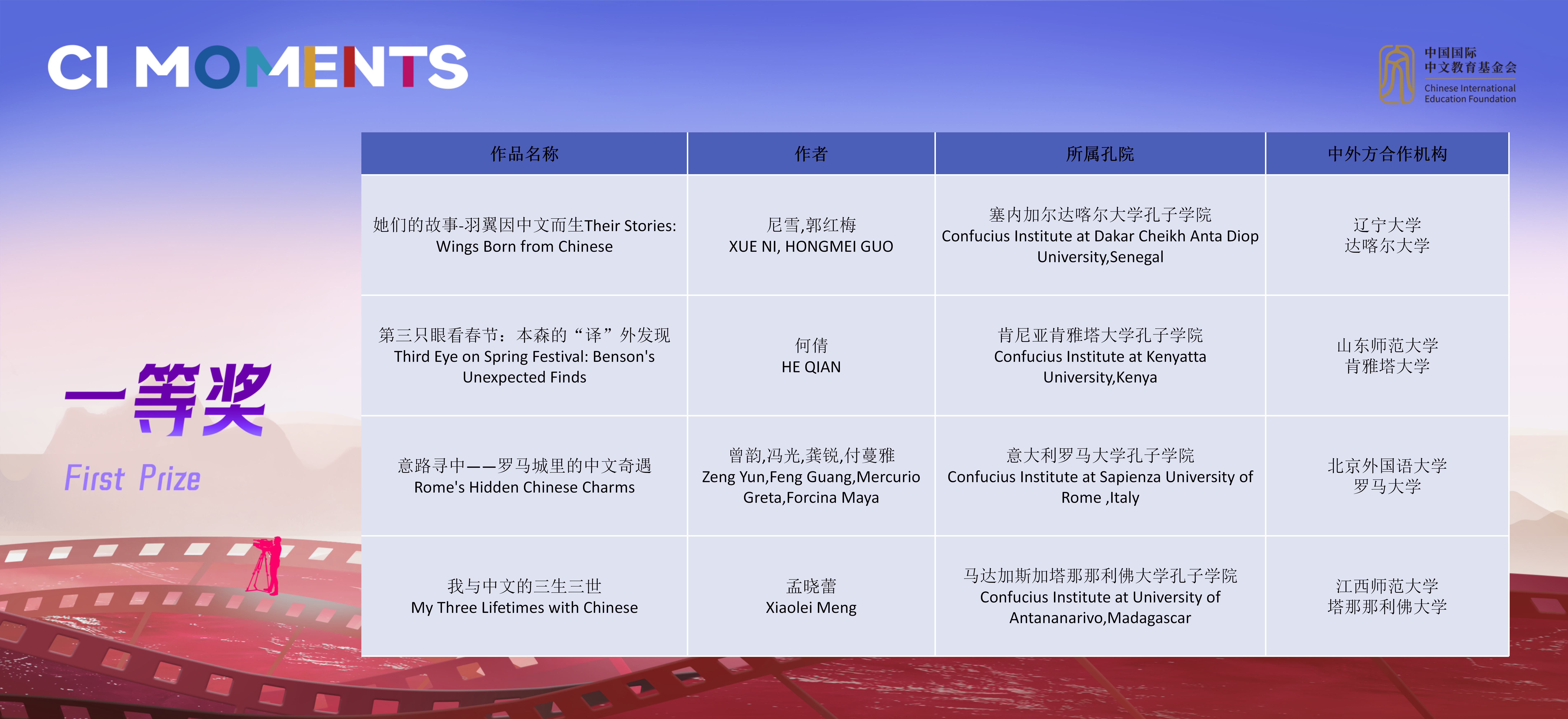 Over the past five years, it is the sincere creations and creative expressions of CIers and Chinese language enthusiasts worldwide that have made the "CI Moments" journey of pursuing dreams possible. Thank all participants for their support to the "CI Moments" event! Congratulations to all creators who have achieved outstanding results in this event.