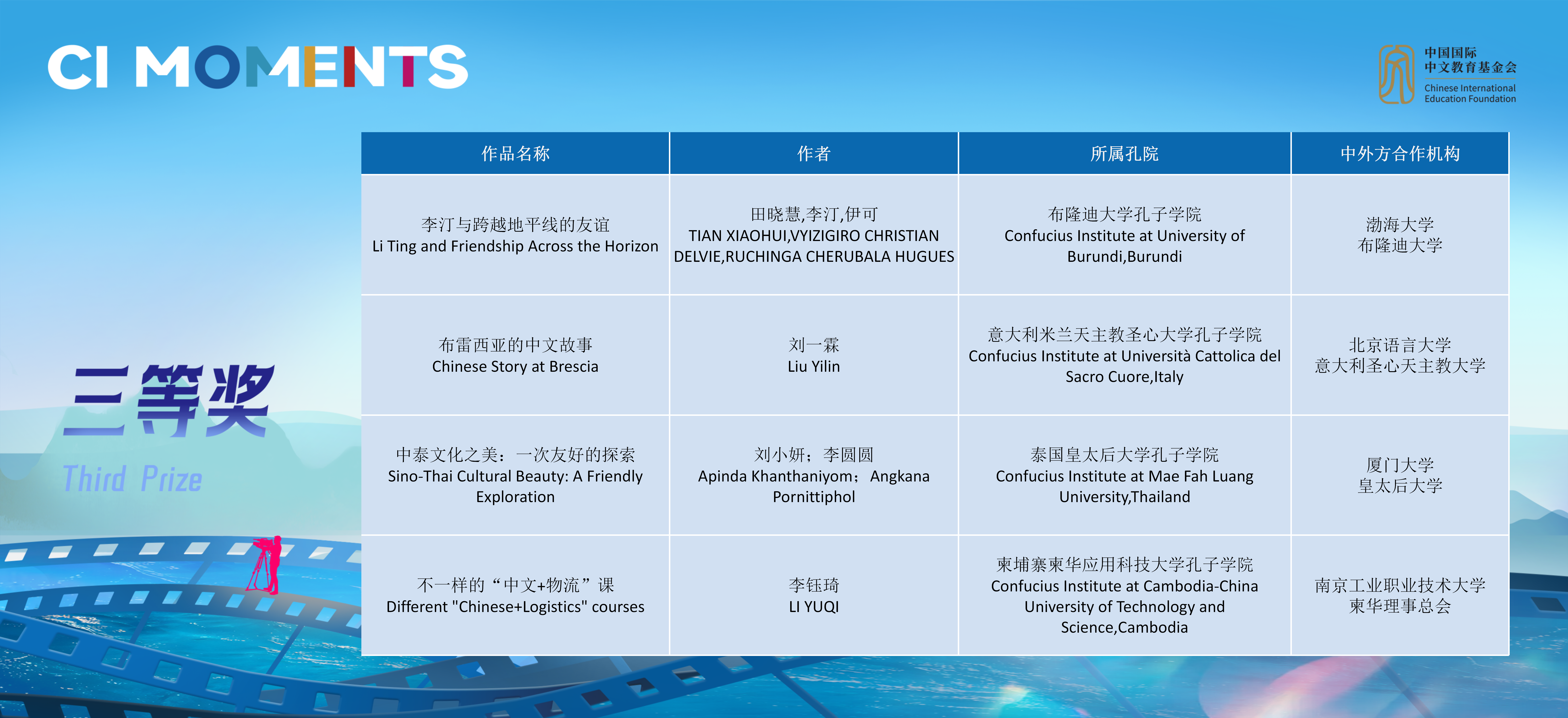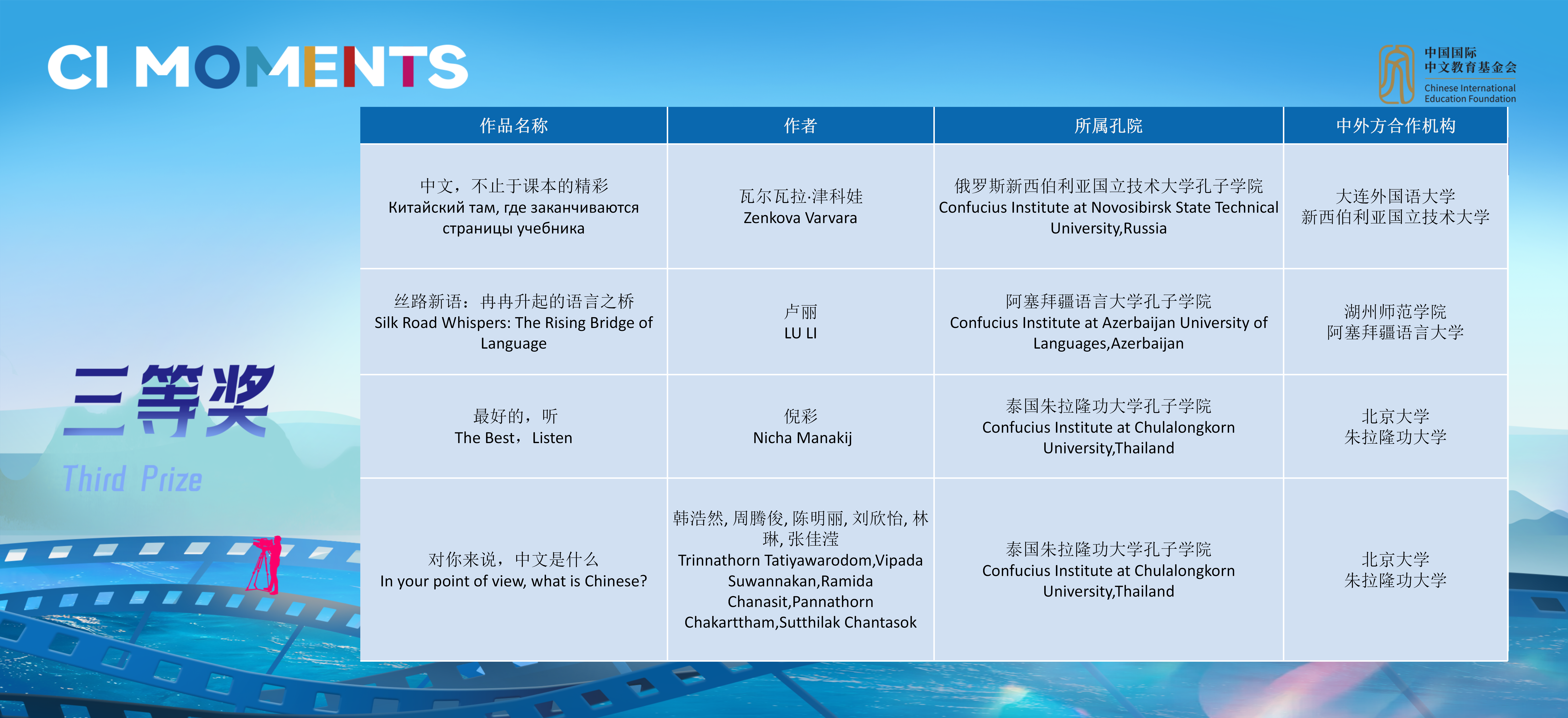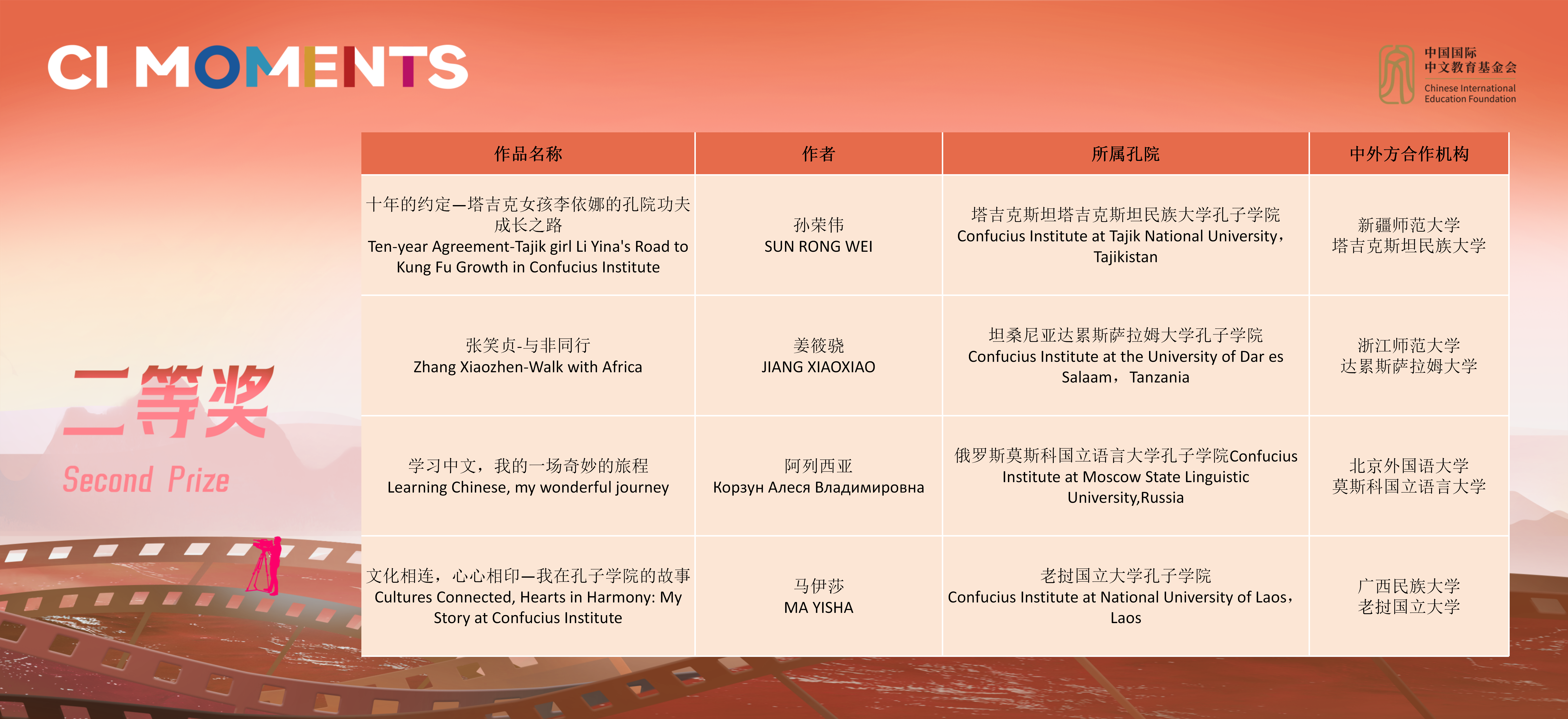 Over the past five years, it is the sincere creations and creative expressions of CIers and Chinese language enthusiasts worldwide that have made the "CI Moments" journey of pursuing dreams possible. Thank all participants for their support to the "CI Moments" event! Congratulations to all creators who have achieved outstanding results in this event.