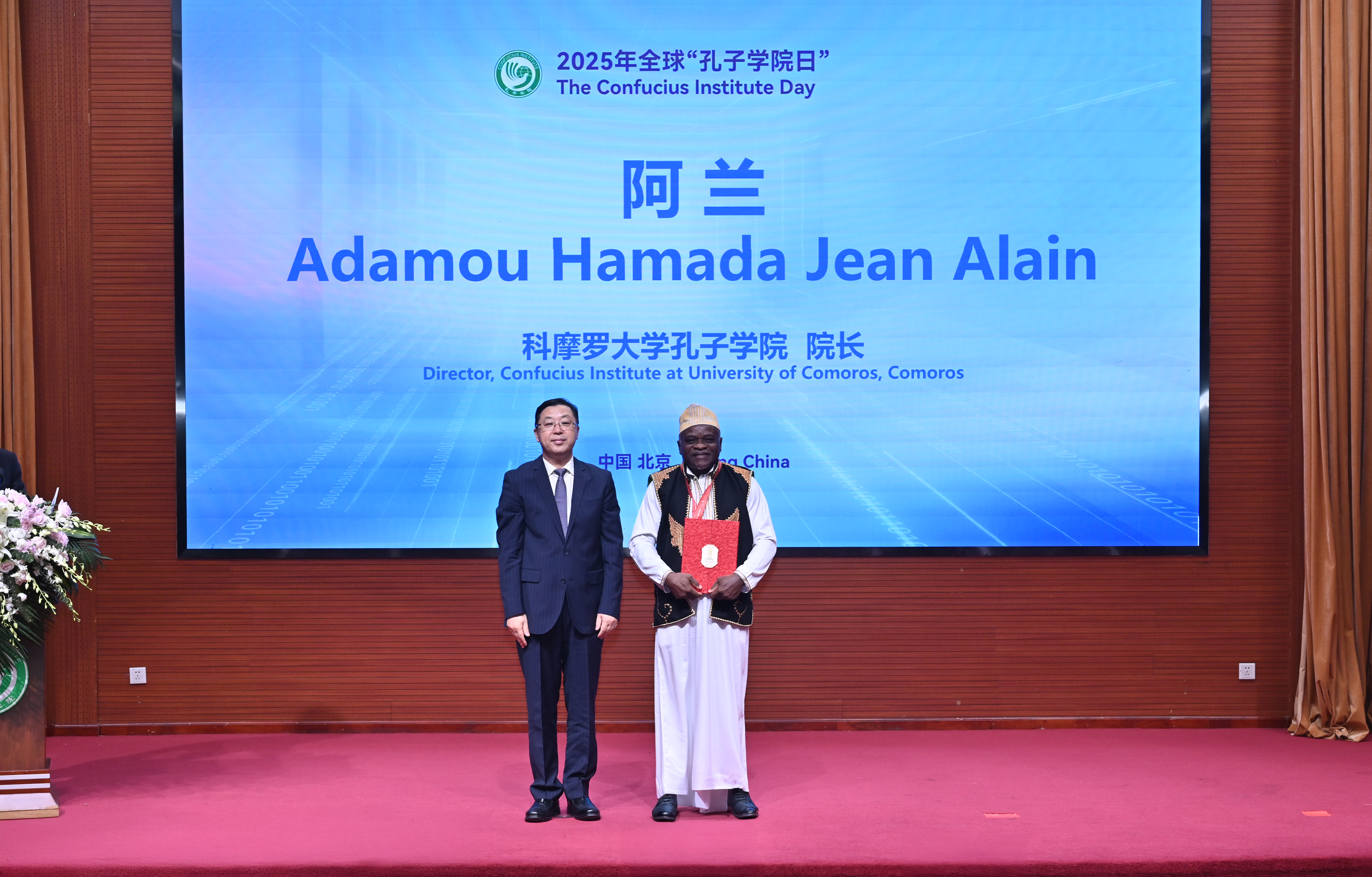 9月25日,2025年全球“孔子学院日”活动在京成功举办。本次活动由中国国际中文教育基金会主办、北京语言大学承办,主题为“数智赋能新发展”。阿尔及利亚驻华大使卡伊德·苏莱曼·拉赫桑,孟加拉国驻华大使馆公使衔参赞、副馆长卡齐·习奥·哈桑,马达加斯加驻华大使馆公使衔参赞桑巴尼亚纳·维克托等驻华使节,中国政府部门代表,孔子学院院长、中外方合作机构代表等中外来宾齐聚一堂。活动由中国国际中文教育基金会副理事长、秘书长赵灵山主持。