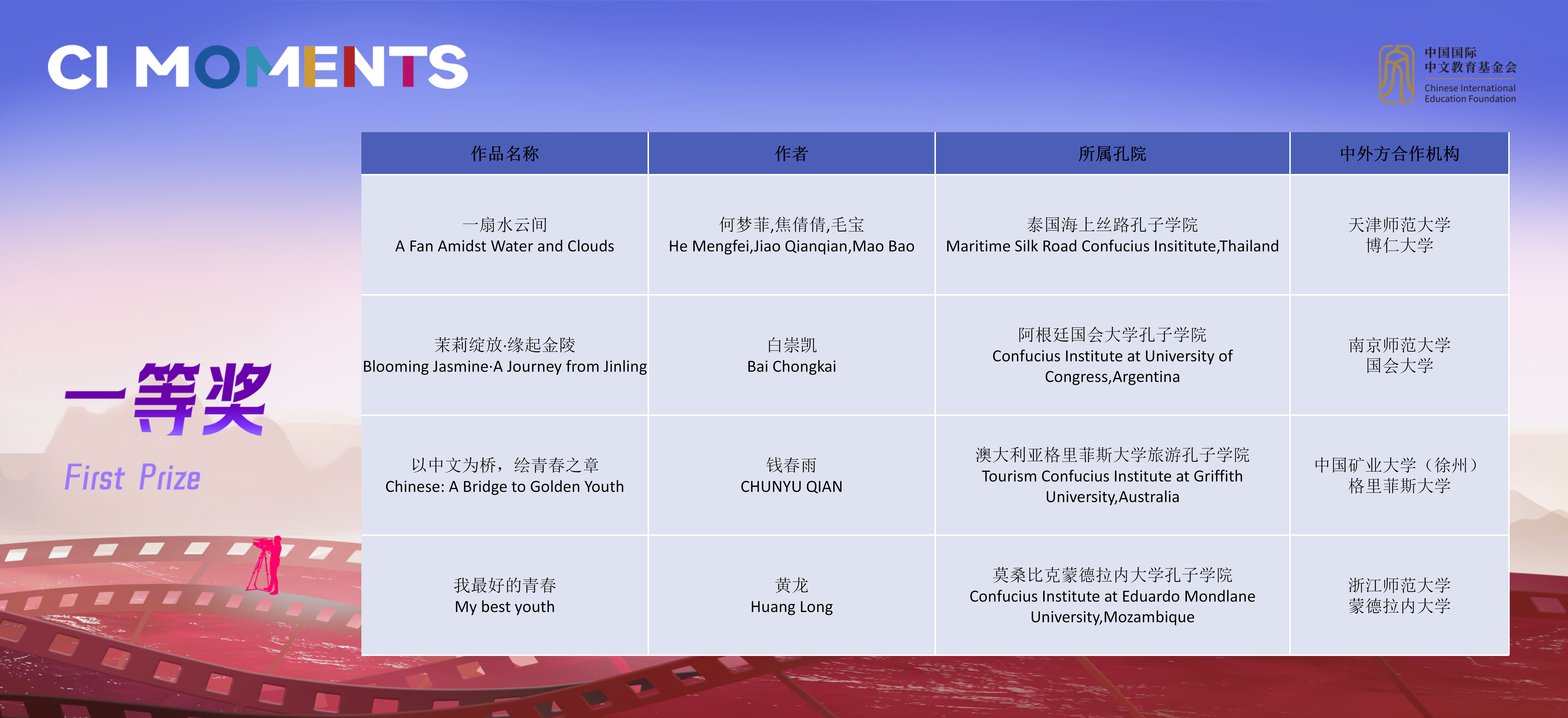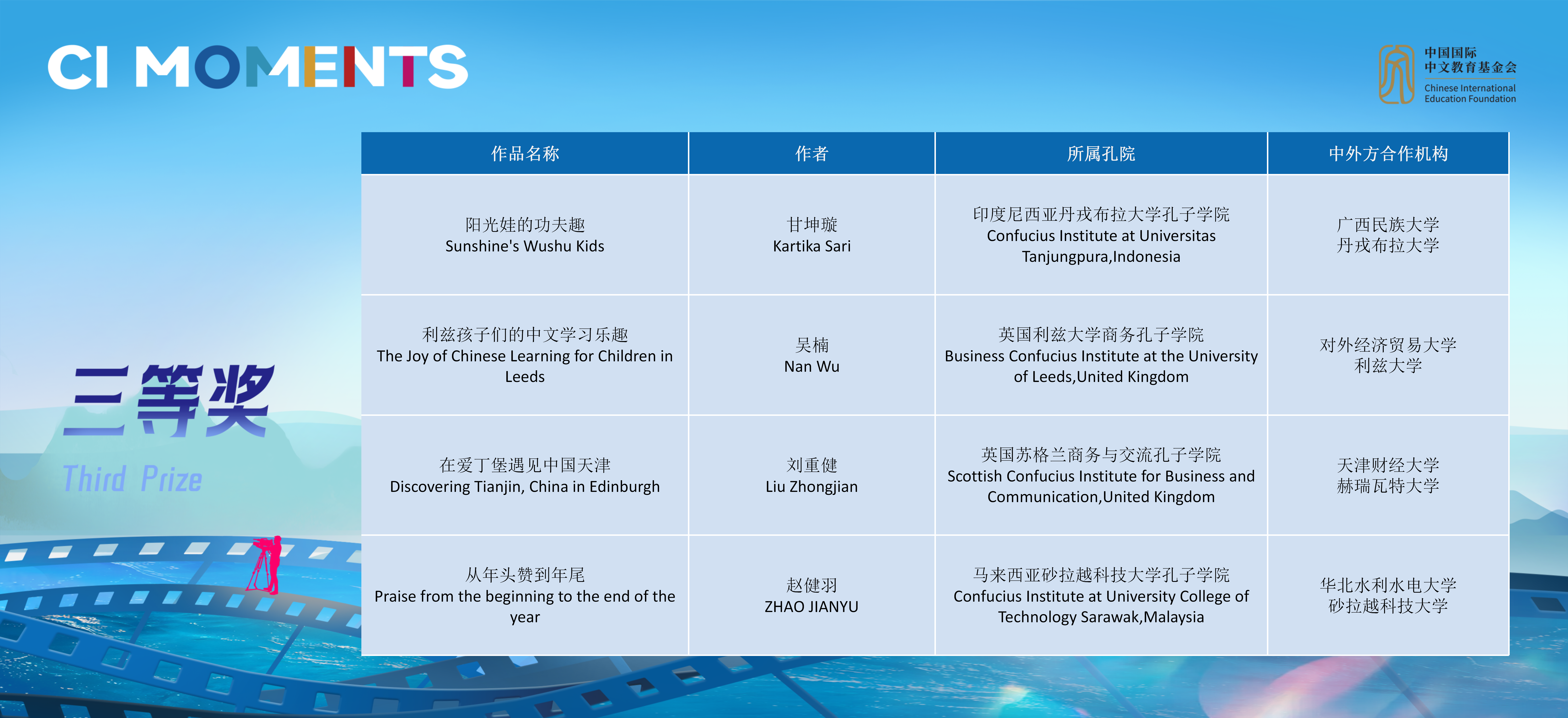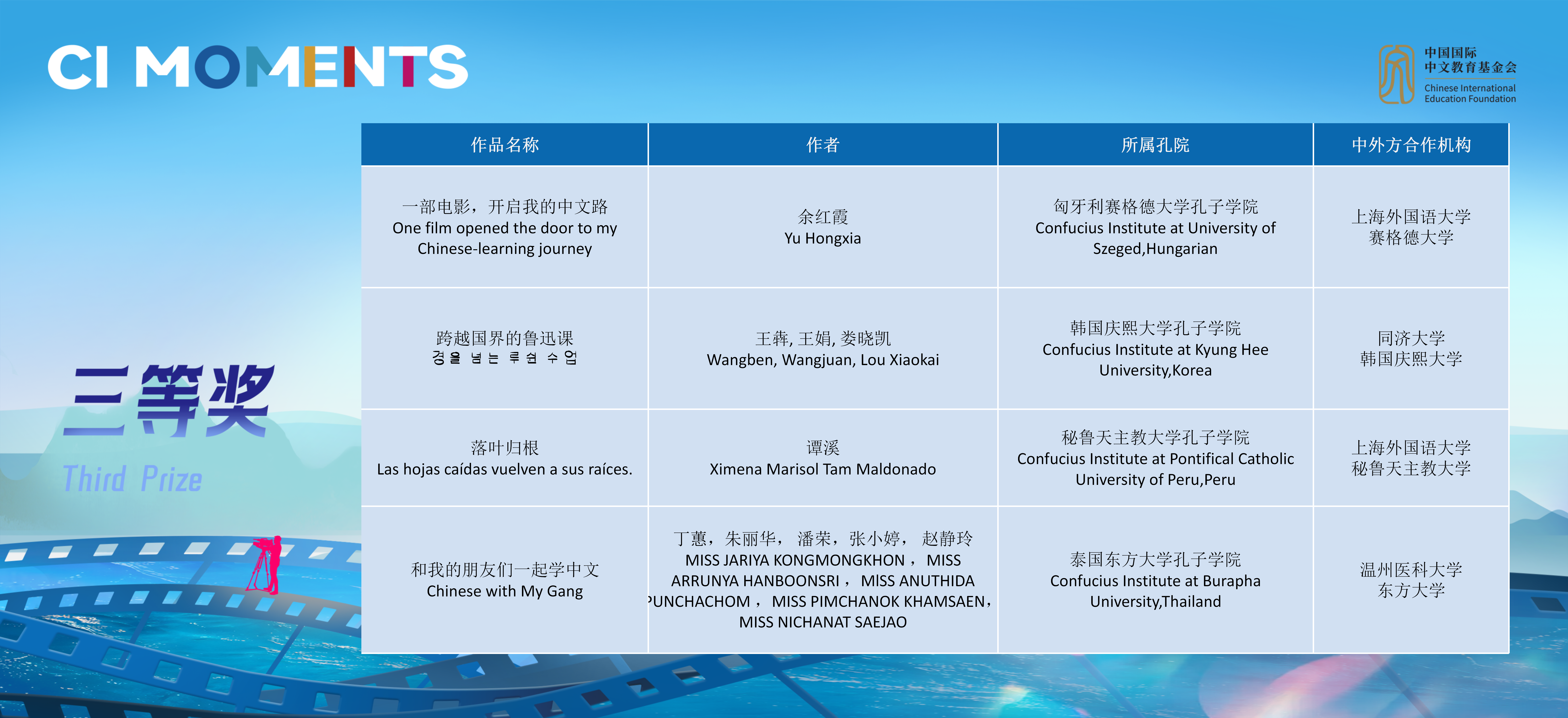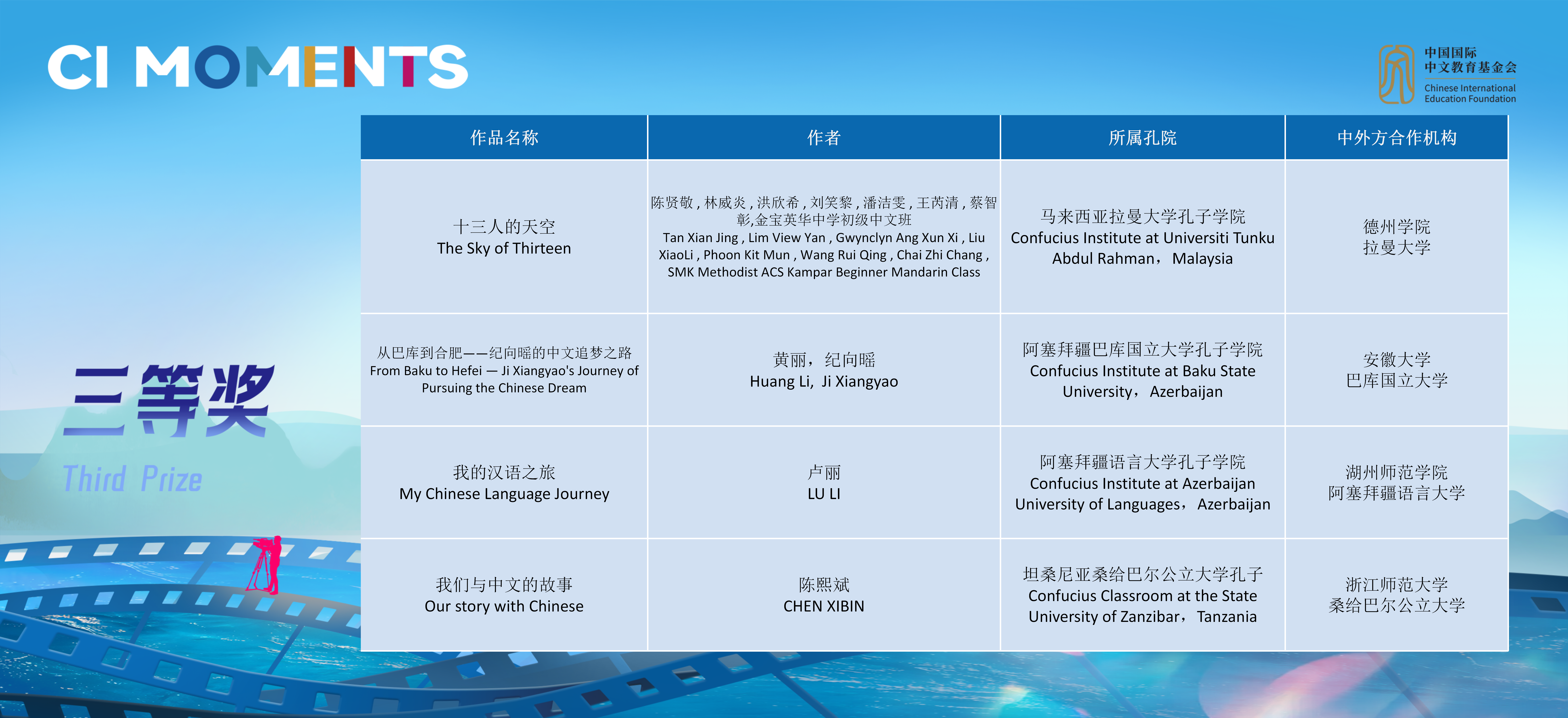获奖视频将在孔子学院全球门户网站ci.cn持续展映。