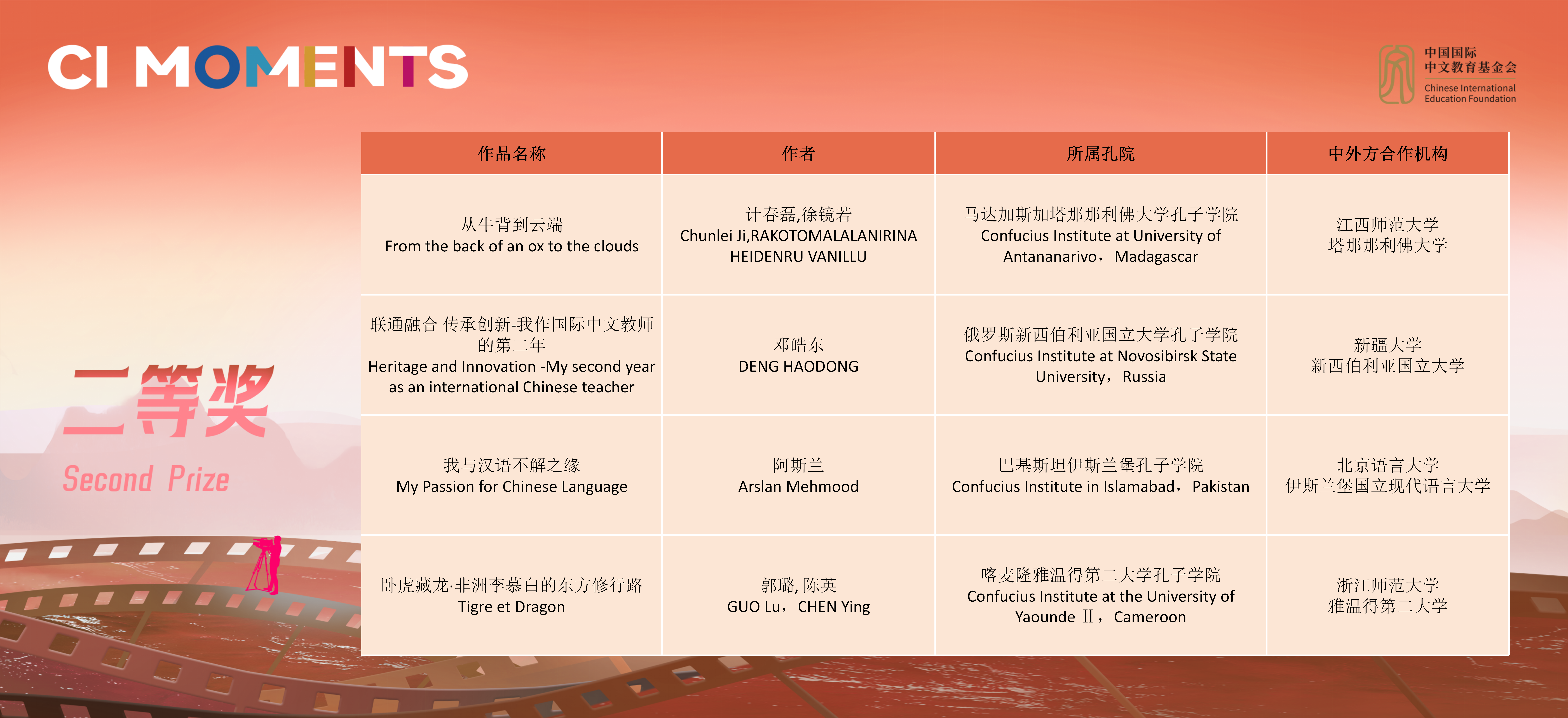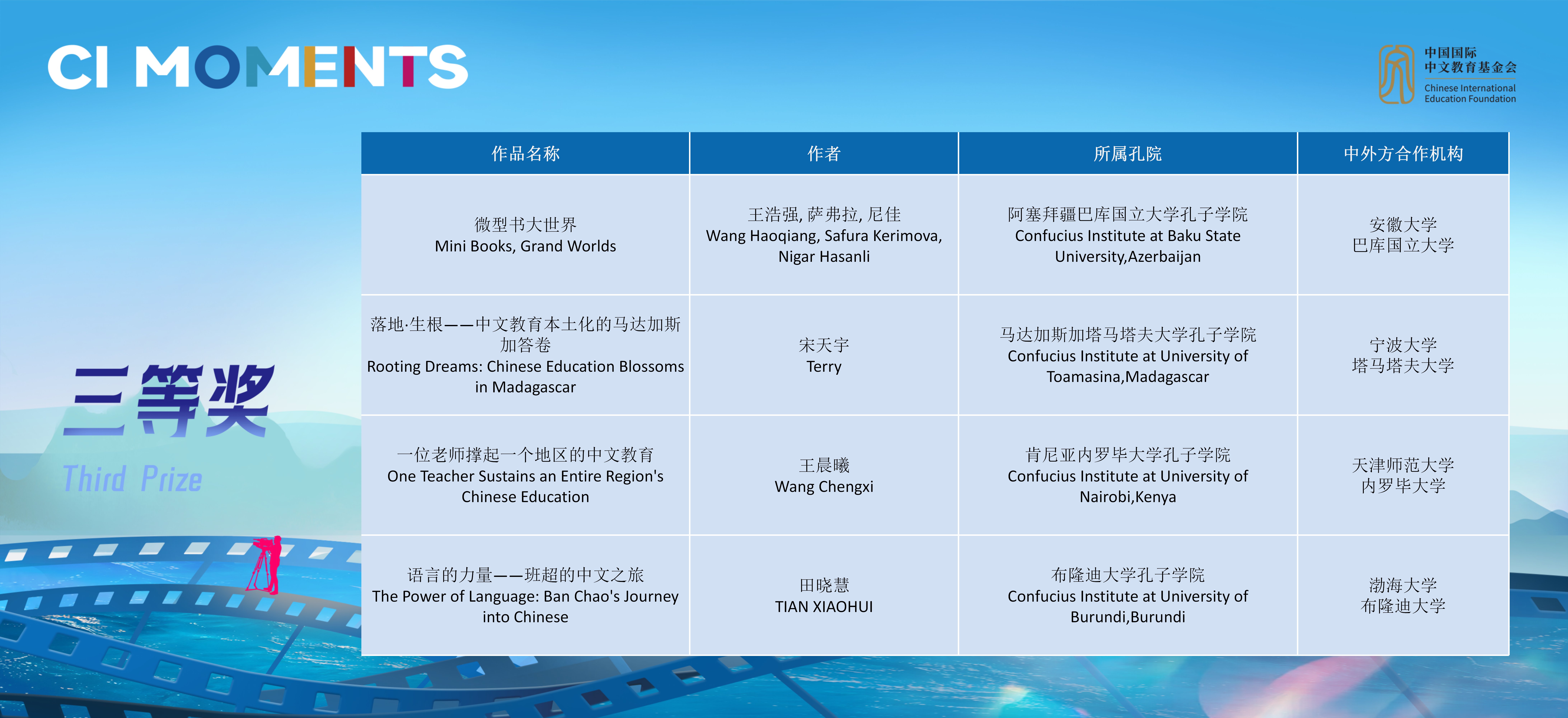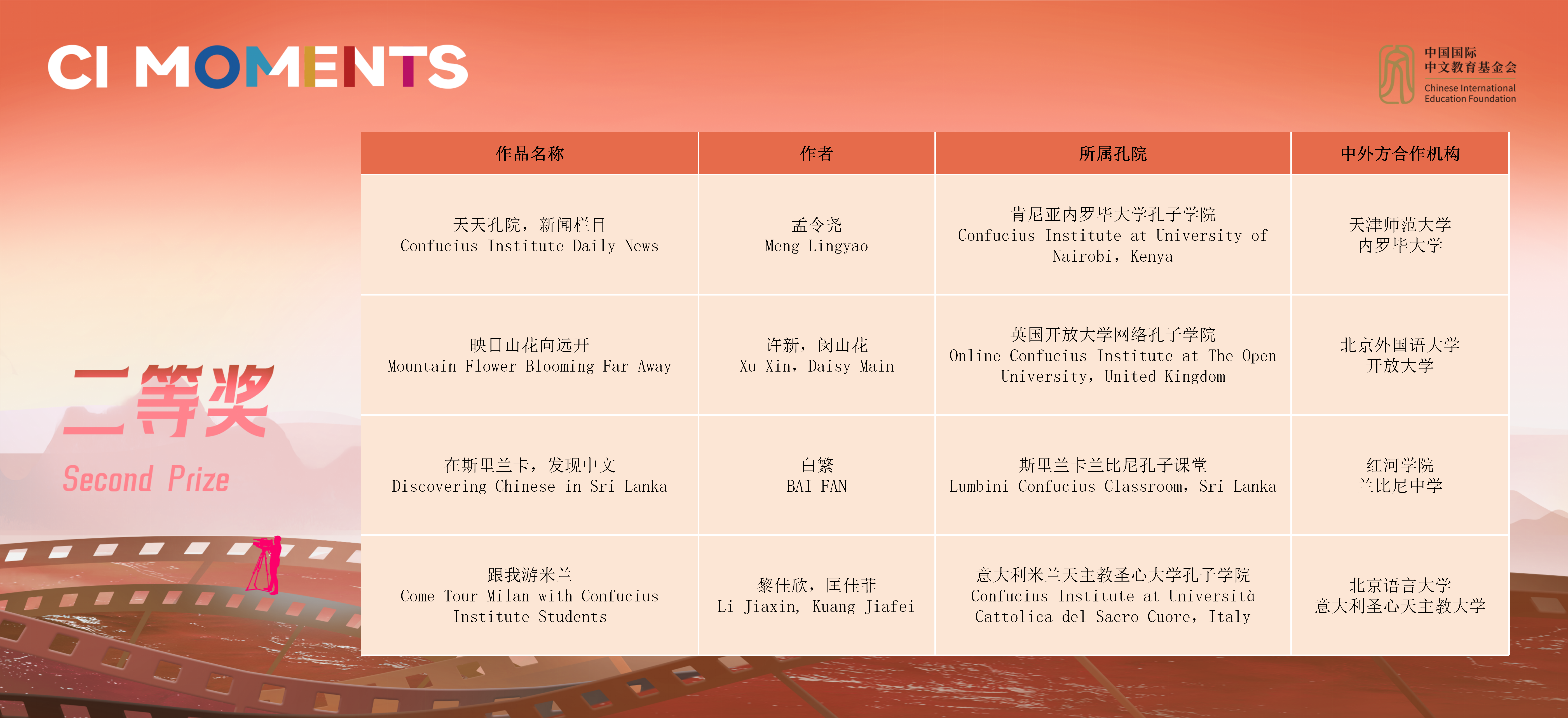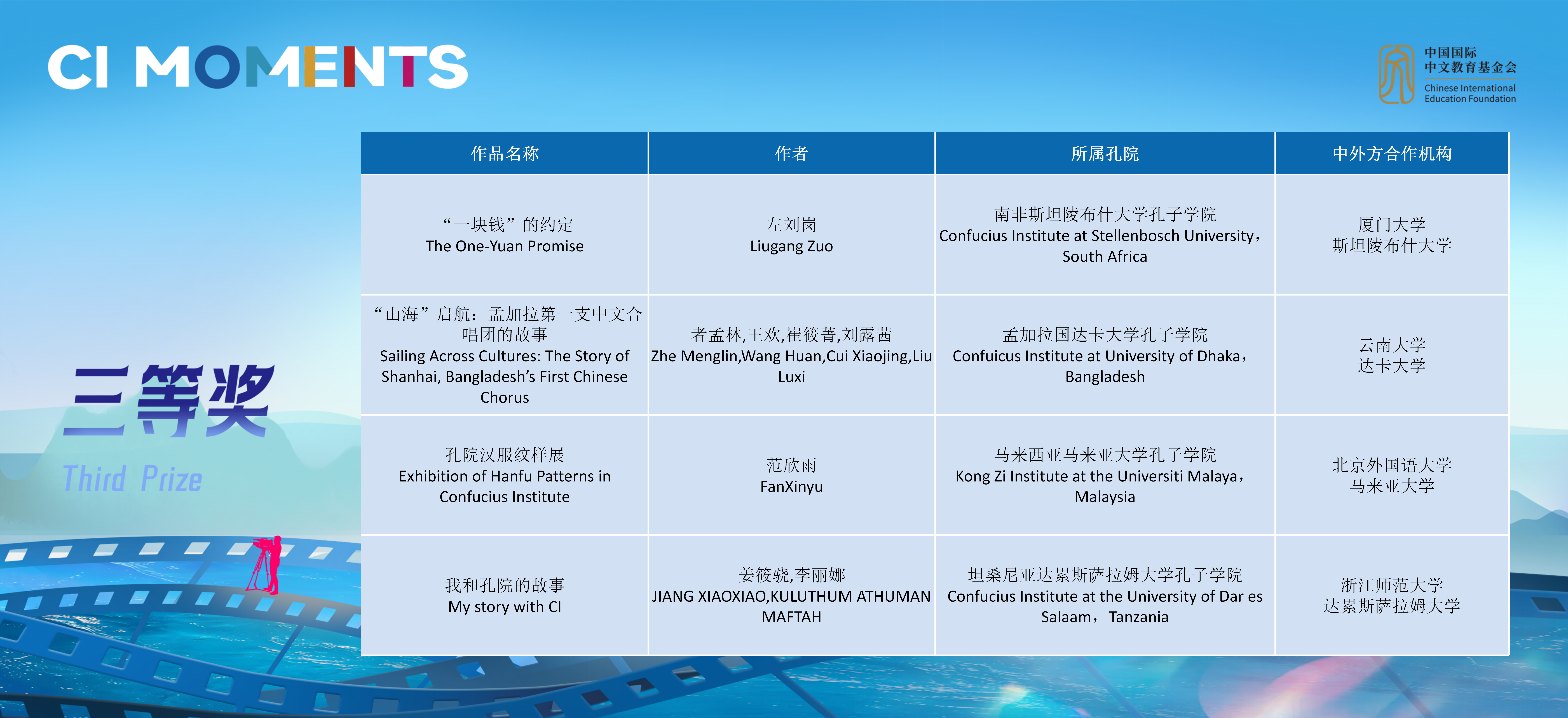 获奖视频将在孔子学院全球门户网站ci.cn持续展映。