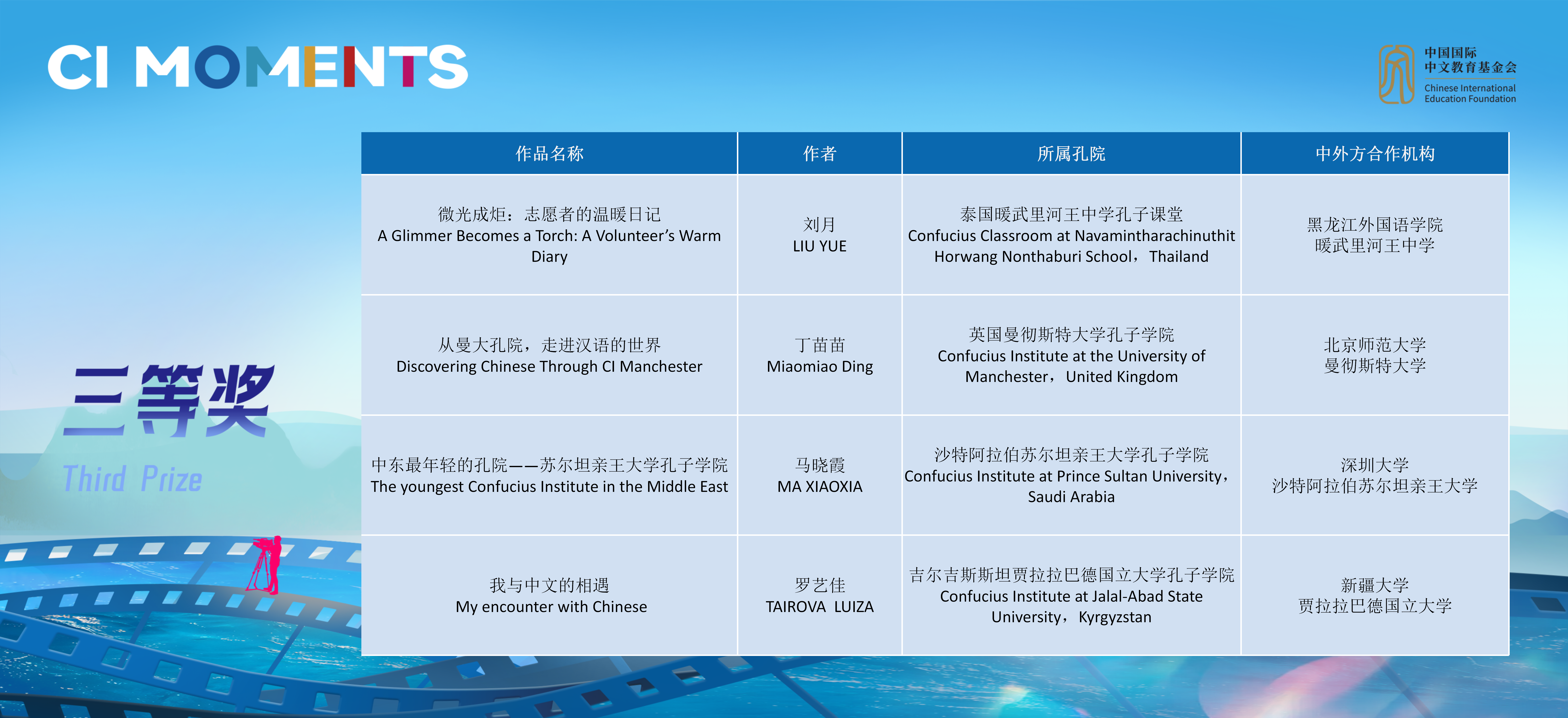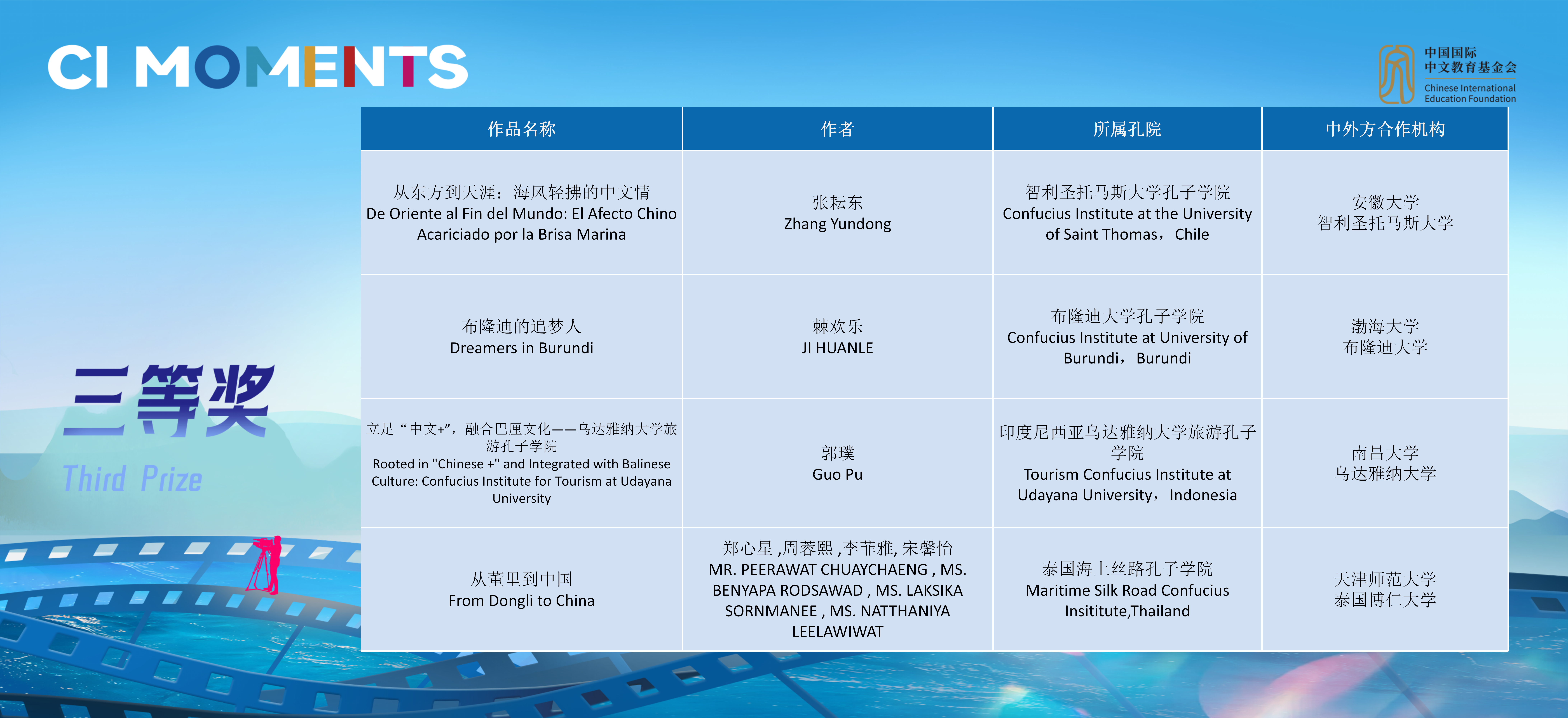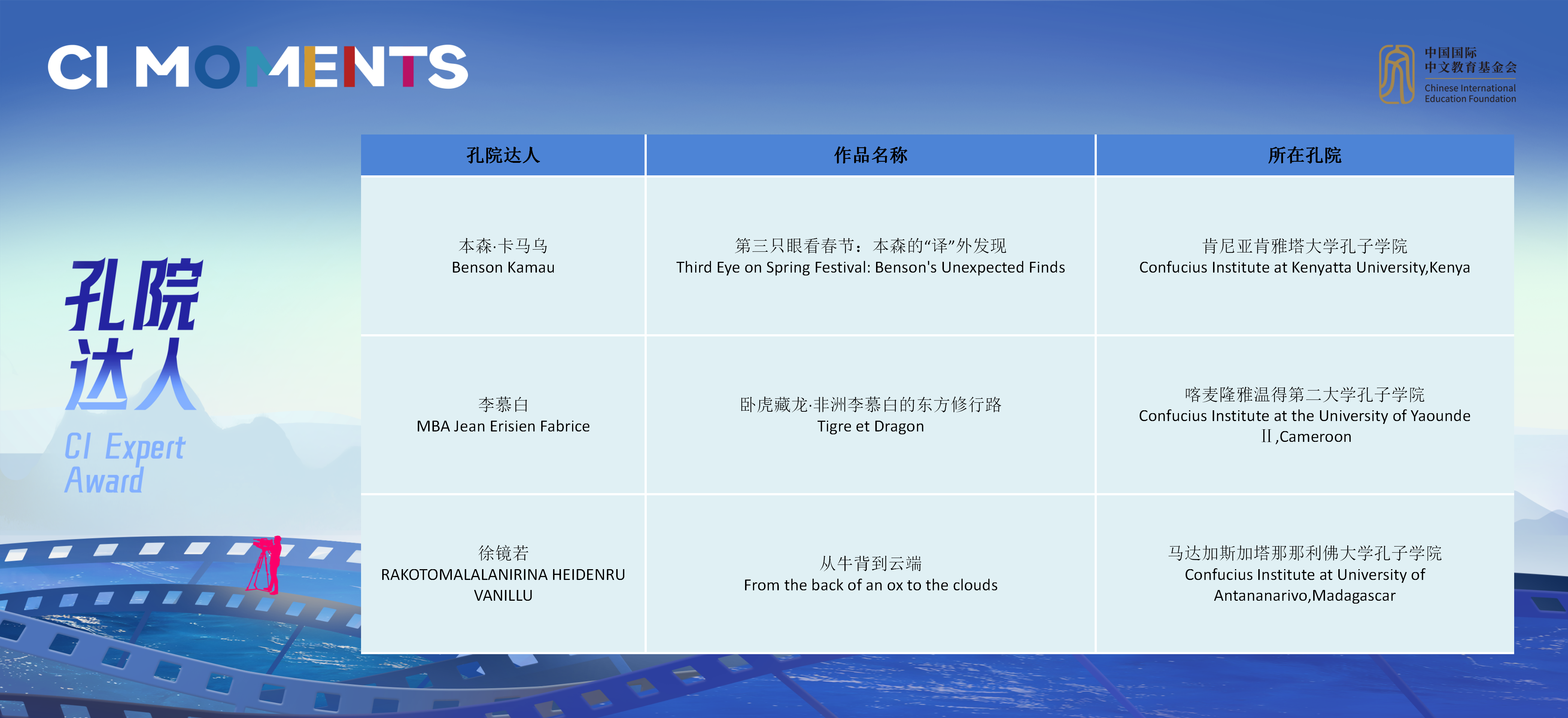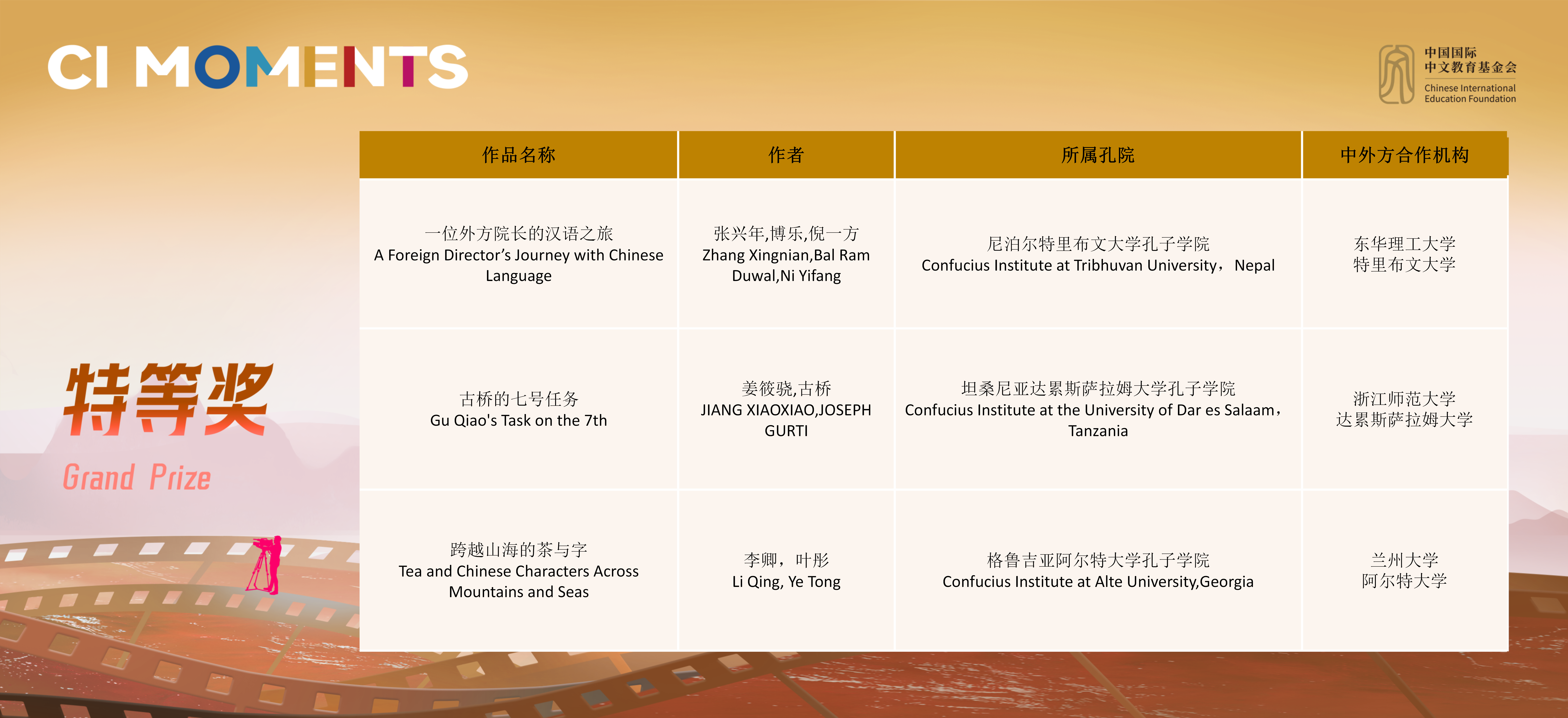 获奖视频将在孔子学院全球门户网站ci.cn持续展映。