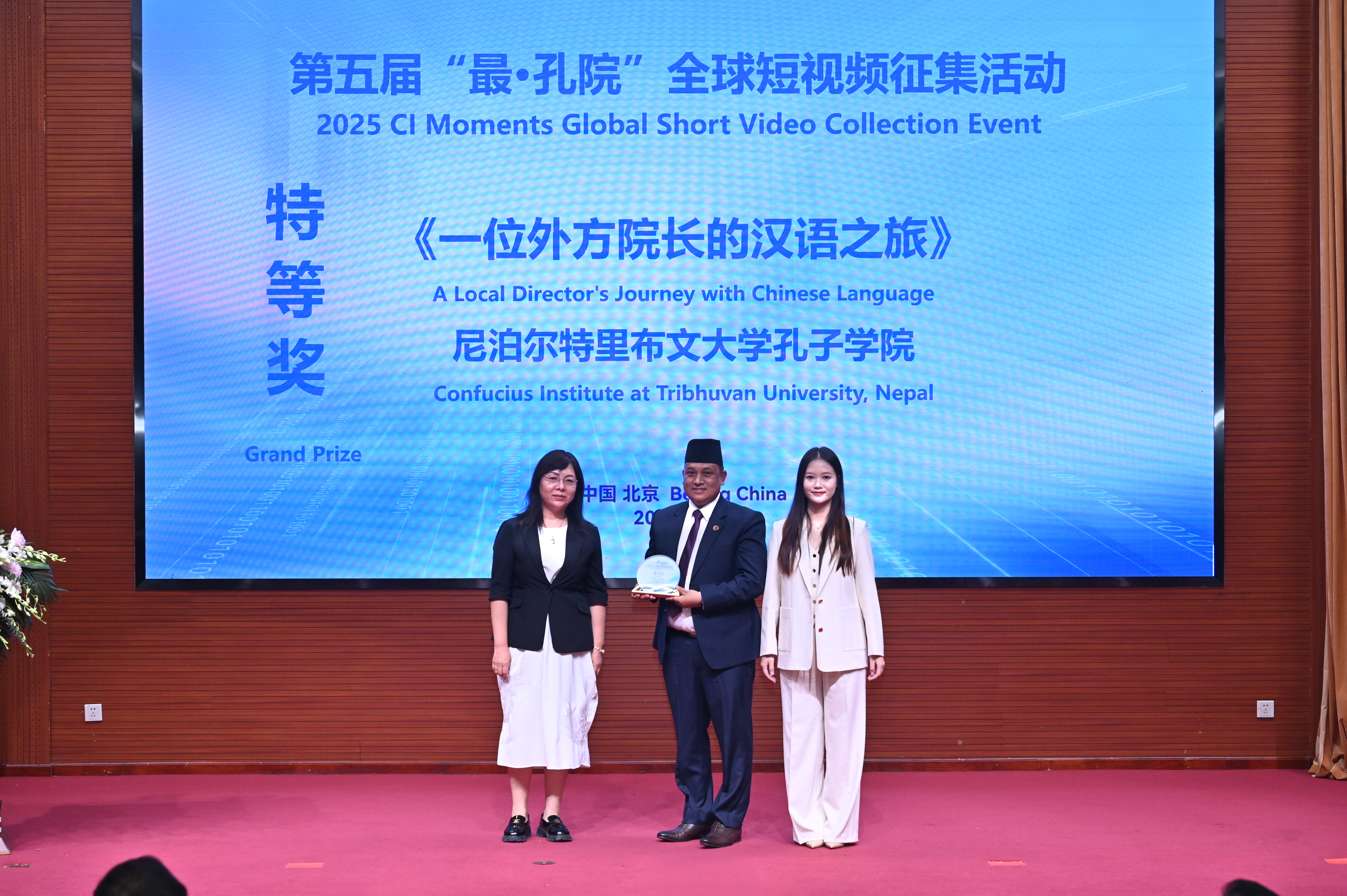 尼泊尔特里布文大学孔子学院获奖代表博乐院长、倪一方老师