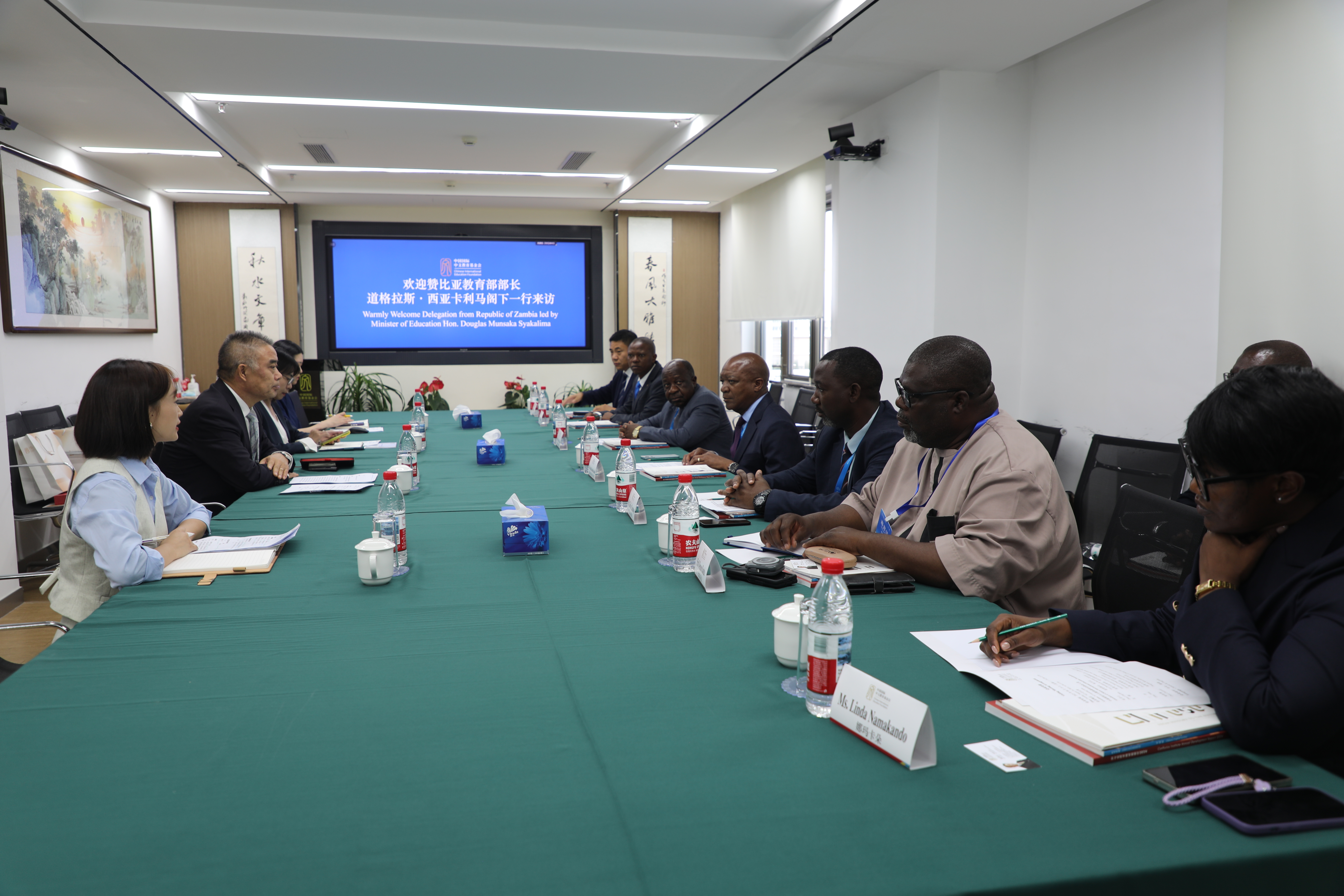 2025819日,赞比亚教育部部长道格拉斯·西亚卡利马率赞比亚穆伦古希大学代表、赞比亚驻华使馆代表访问中国国际中文教育基金会,基金会副理事长、秘书长赵灵山会见代表团。双方就赞比亚孔子学院工作进行交流。